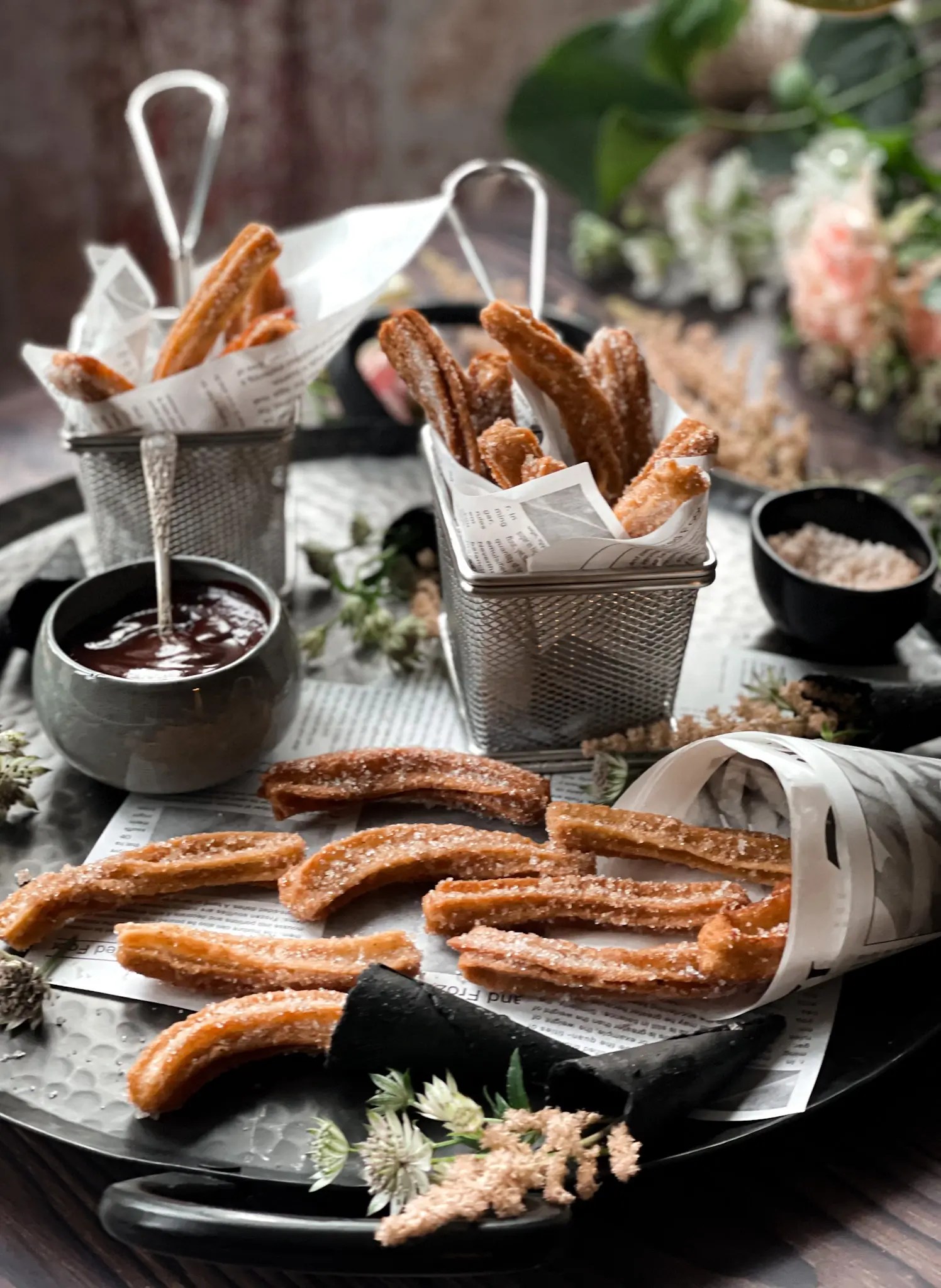 Tags: Chocolatechocolate dipping sauceChurrosCinnamonCrispfried dessertsparty snacksspanish inspired dessertsvegetarian desserts