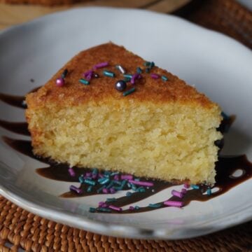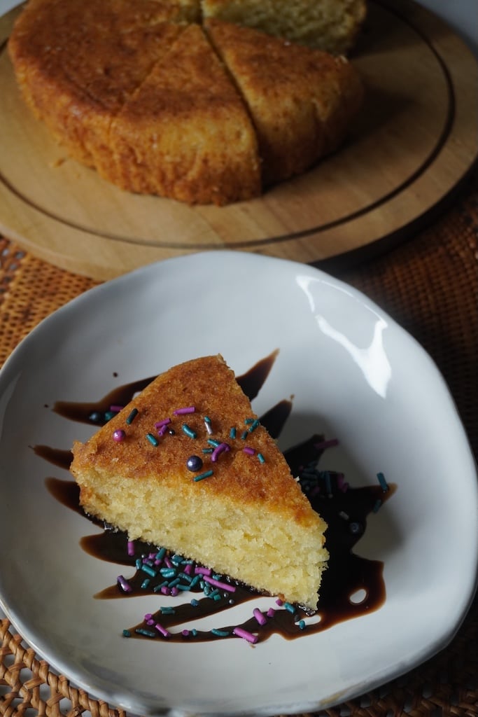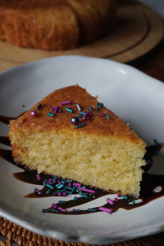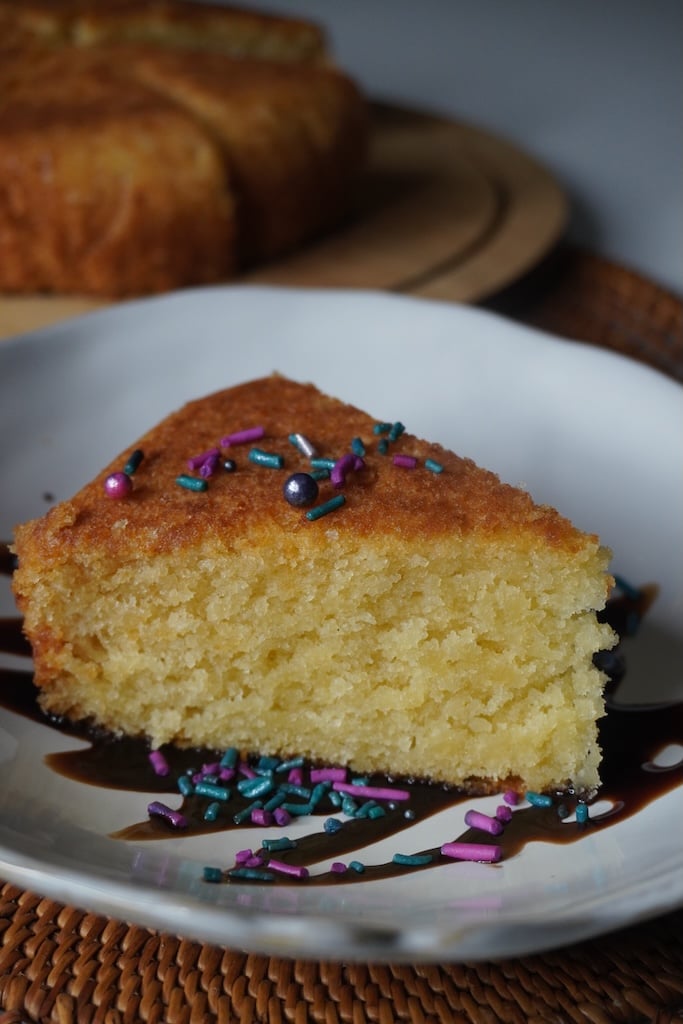 This cake is super moist and tender. The cake is made with coconut and coconut milk to make it soft. Since this cake has coconut, it doesn’t last longer and the shelf life is short.