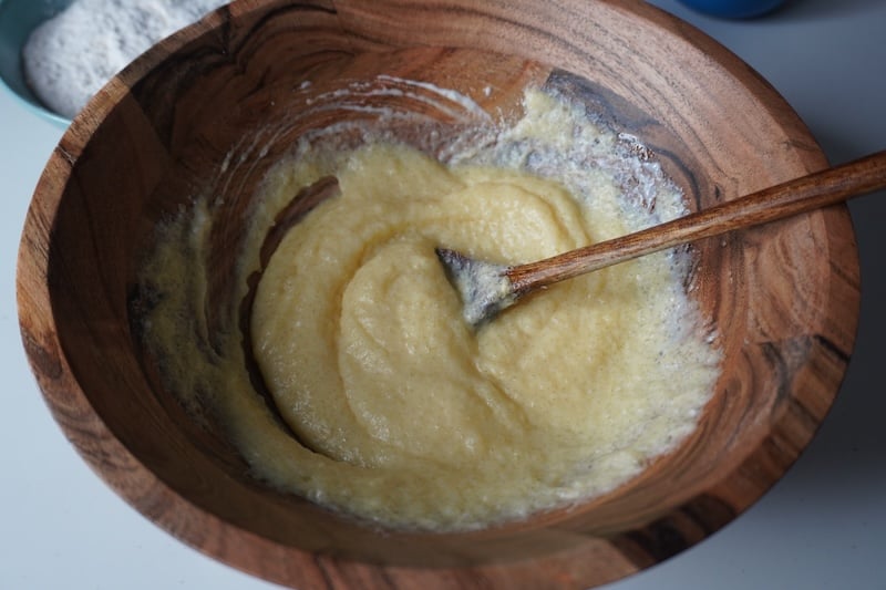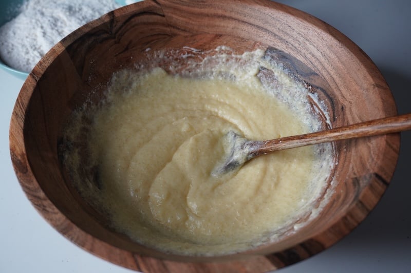 11) and use a wooden spoon or spatula to gently fold the batter.