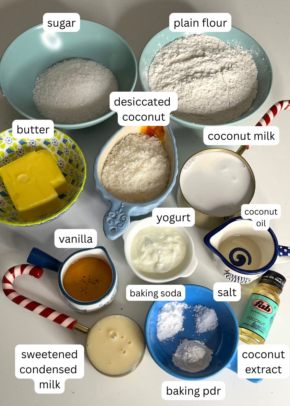 Looking for a basic coconut cake which is egg free, then this is the answer. The recipe for making coconut cake uses basic ingredients like flour, butter, sugar, coconut milk and coconut. This is a basic cake made without eggs which is perfect with a cup of tea or coffee.