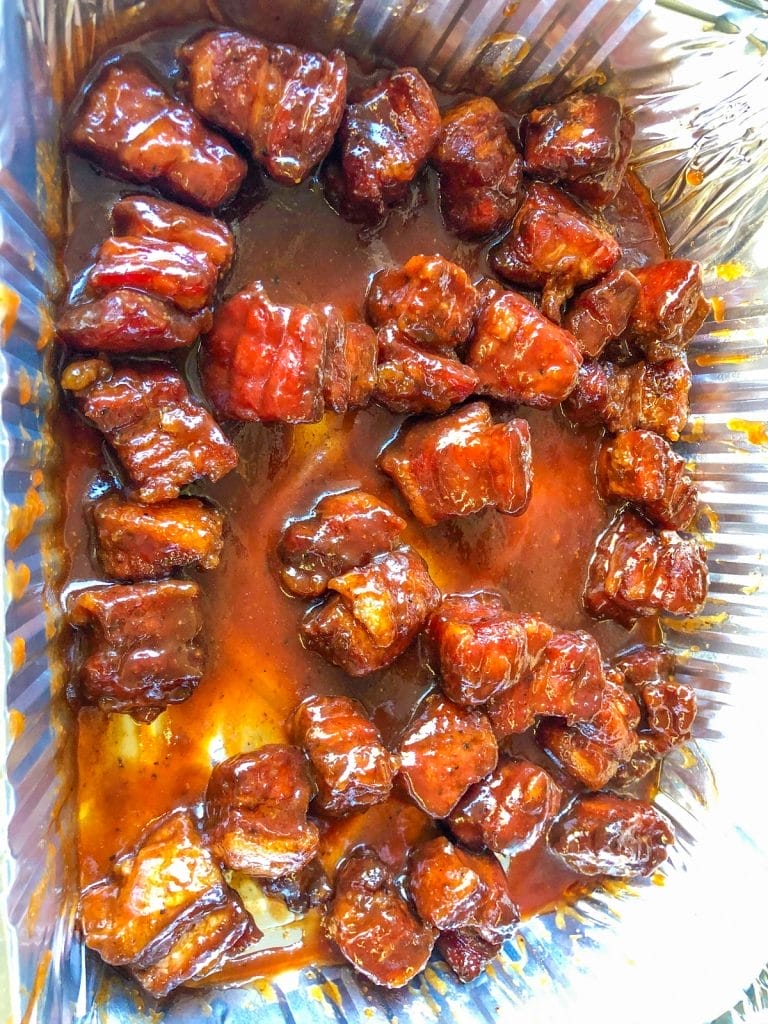 Caramelized, smoky bites of pork that are made for winter snacking or game day.