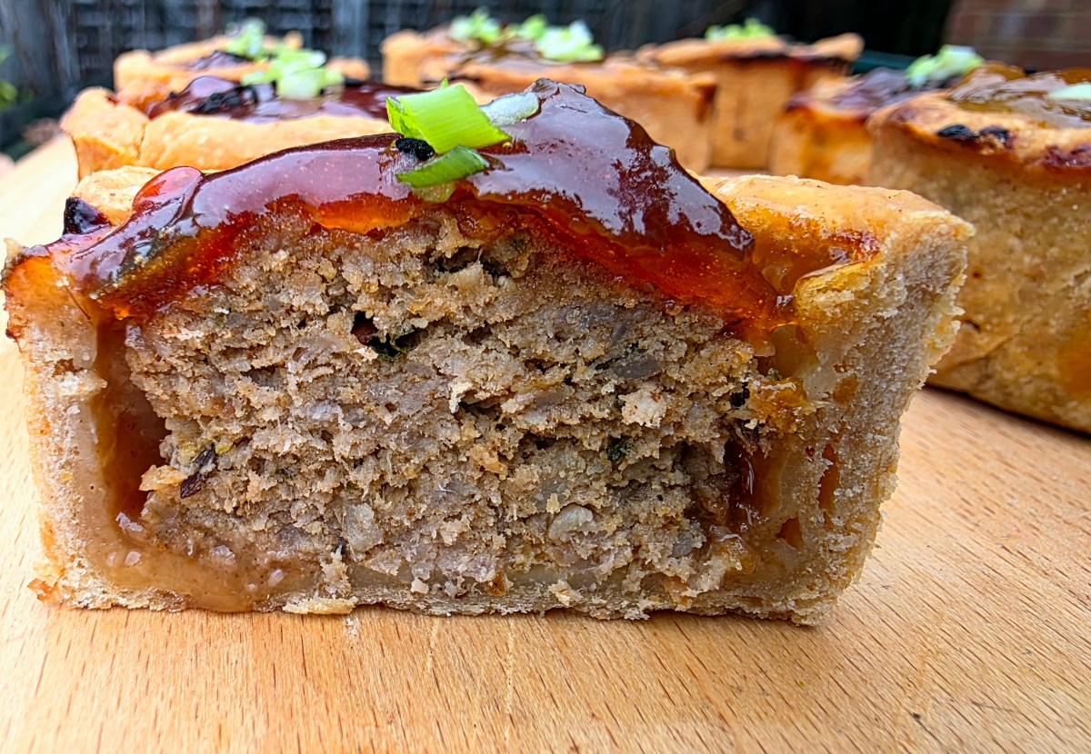 There is no lid to these pies; instead you have a mango chutney or a chutney of choice: and it really works having this as a topping rather than on the side.