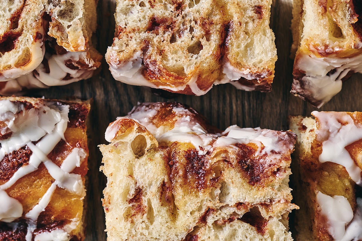 King Arthur’s Recipe Development and Test Kitchen Manager Sarah Jampel was recently inspired by the uber-popular sweet focaccia trend and developed this Big and Bubbly Cinnamon Roll Focaccia. The pillowy dough is studded with Cinnamon Sweet Bits for pockets of gooey sweetness, while the dimpled top is drenched in a buttery, brown sugar-cinnamon mixture and drizzled with icing after it’s baked.