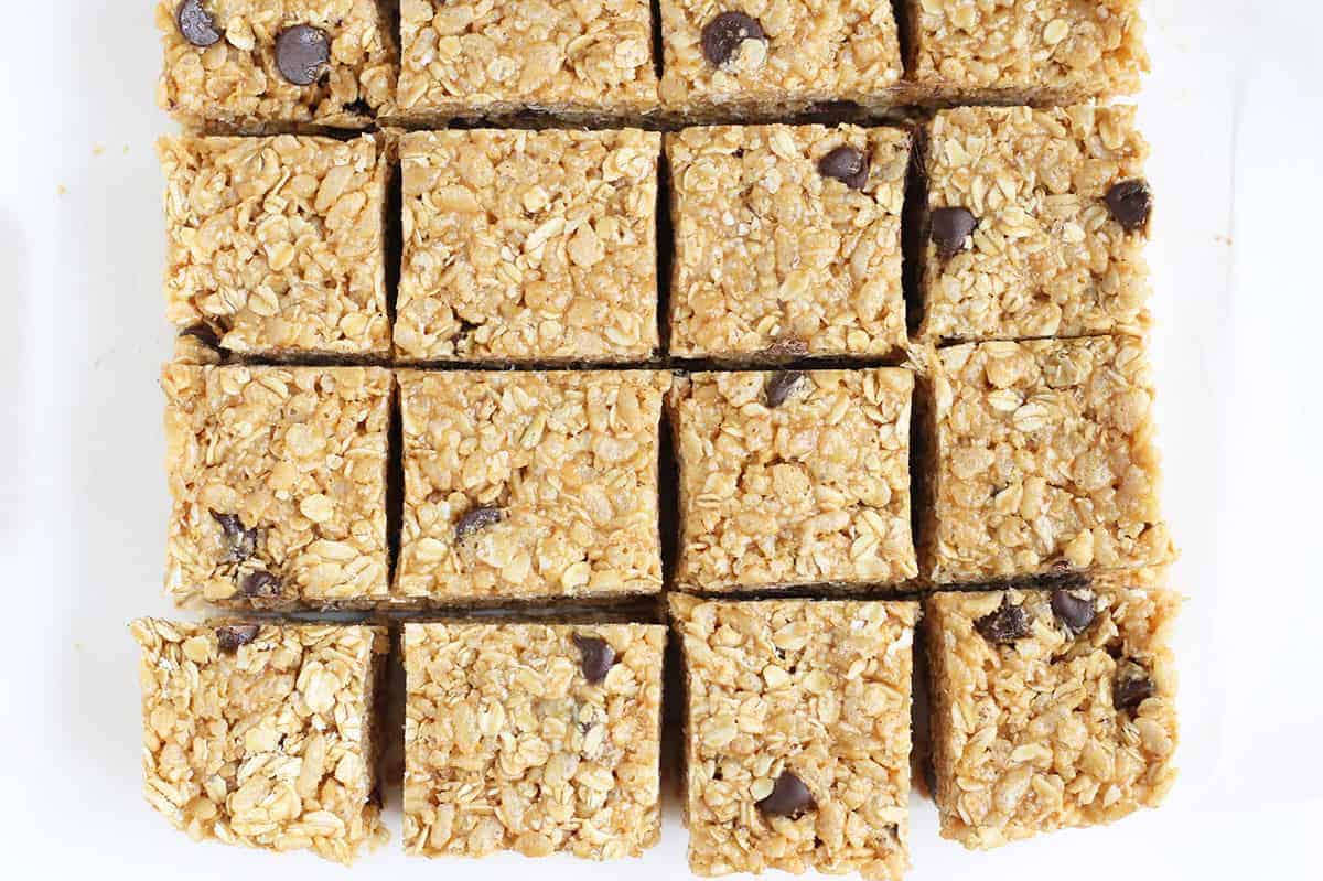 They come together easily in a bowl and just need 10 minutes in the fridge to set up into sliceable bars. Which makes them one of the easiest homemade snacks you can make for your family.