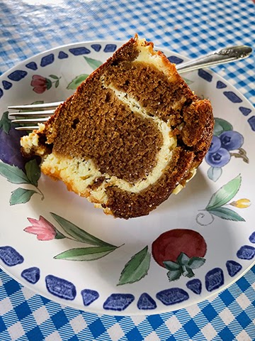 This Gingerbread Bundt Cake is similar because there is a filling that starts with cream cheese and gets flavored with lemon zest and juice. It’s a new-to-me recipe from a blog called Desserts with Stephanie. The gingerbread part is exactly what I like. It’s fully flavored, moist and delicious. I did replace the cup or water with a cup of stout, so with water it might be a more subtle flavor. The filling part didn’t work out so well. It was too thin and so it didn’t stay in the middle but also slid down the side in a few places and made it difficult to get out of the pan. If I make it again I’ll be sure to leave out the lemon juice and substitute 1/4 teaspoon lemon extract, plus add a couple of tablespoons of flour to help thicken it up. Otherwise it’s lovely.