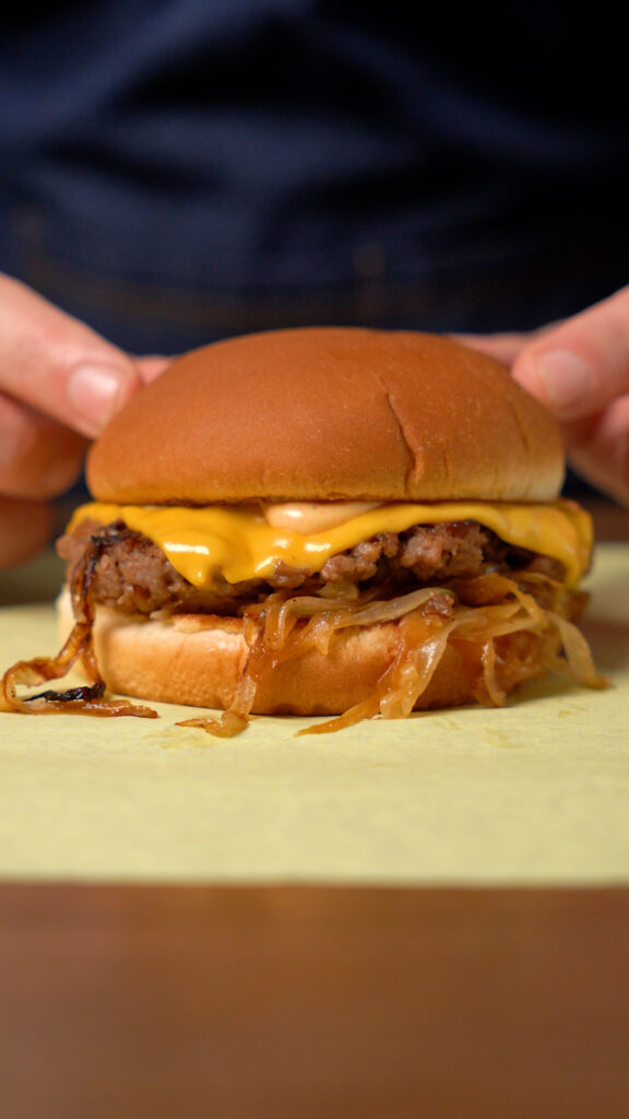 Seeing that 100 years later, things are pretty dang expensive, especially vegan meat like Beyond and Impossible, it behooves me to make them as well! Plus, it turns out smashing onions in a burger not only saves you money, but it’s insanely delicious!