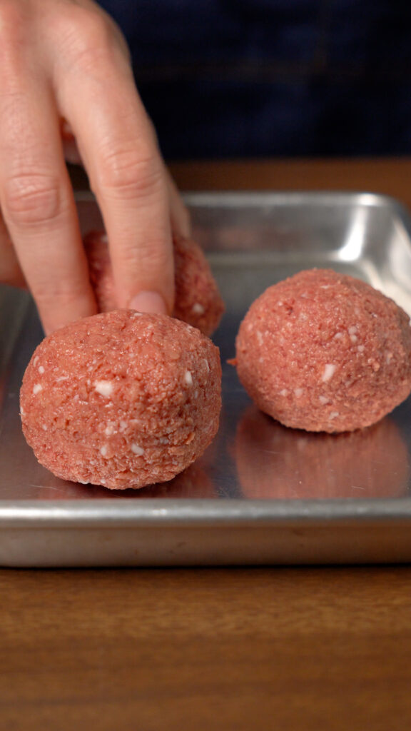 Next, roll up 2 – 3 ounces (55 – 85G) of the plant based meat into balls.