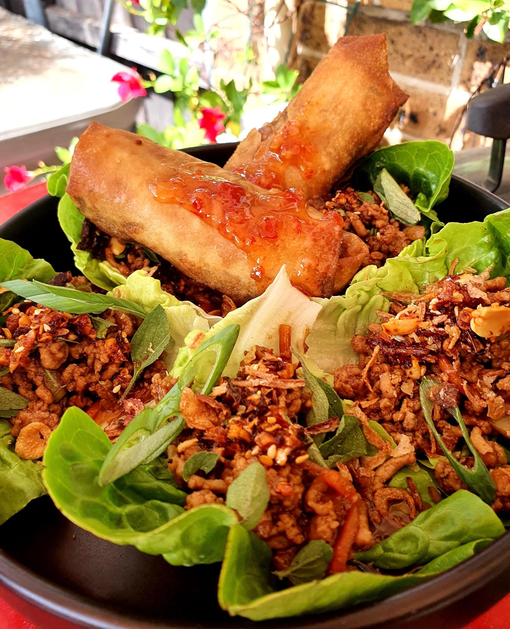To serve set out some lettuce cups, baby cos is great as they are already in bite-size pieces. Top with fried shallots, chilli and/or spring onion. Again, if you have leftovers or want something different, wrap them in store bought spring roll wrappers and deep fry.
