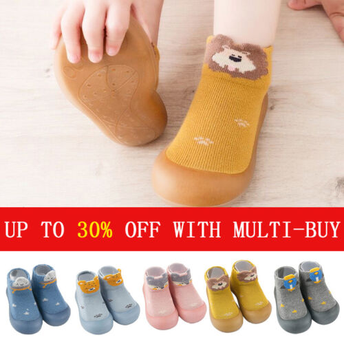 Kids Toddler Anti-slip Slippers Socks Cotton Thick Shoes UK