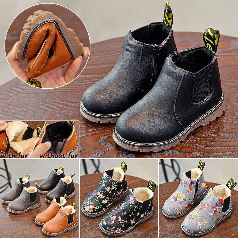 Kids Girls Ankle Boots Winter Warm Snow Boots Chelsea Waterproof Fur Lined Shoes