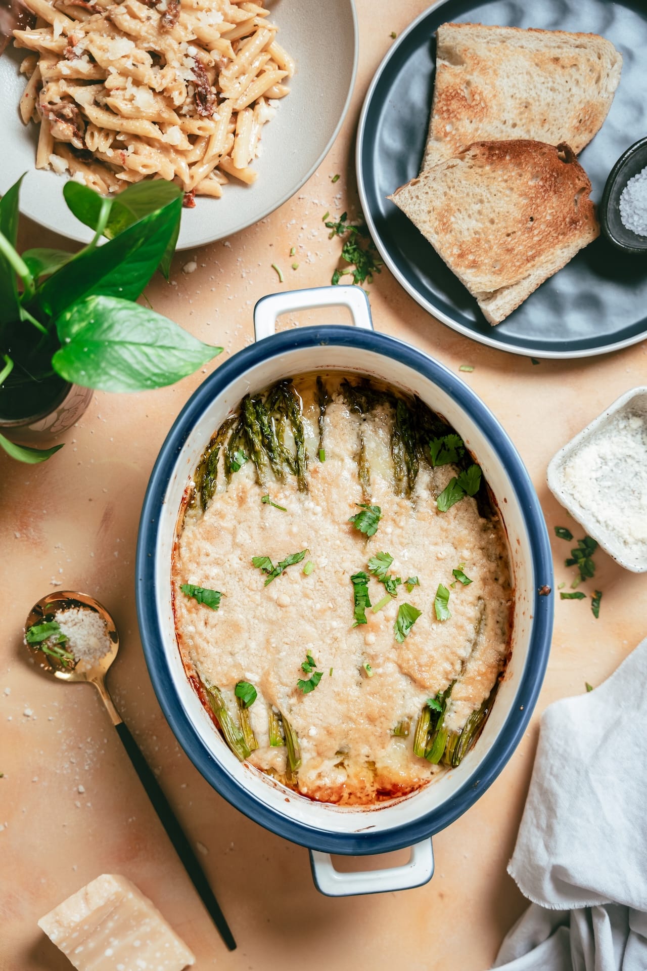 This easy asparagus gratin is a delicious way to enjoy spring’s freshest produce. Whether you’re serving it for Easter brunch, a Mother’s Day lunch, or as a weeknight treat, this cheesy baked asparagus dish will become a new favorite.