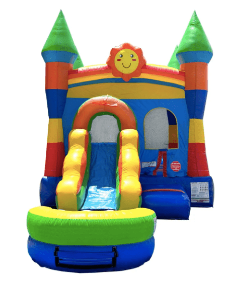 Crossover Rainbow Castle Smiley Face Bounce House + Slide