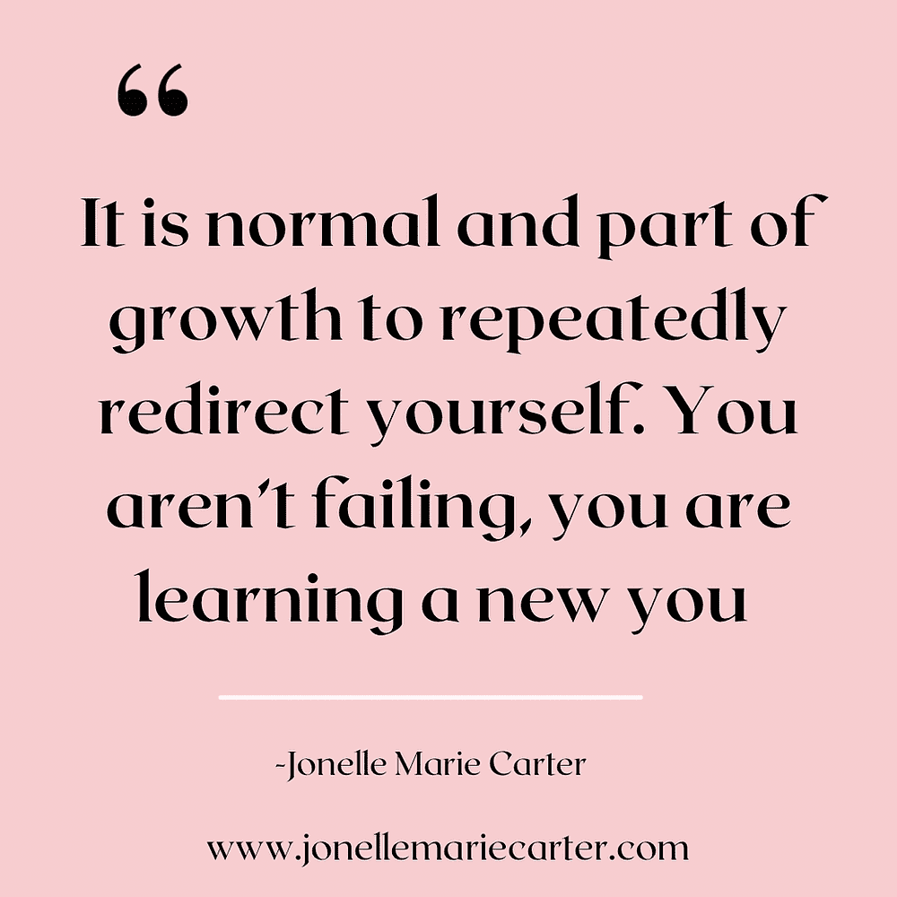 Redirect- “I am learning a new way of life. Today I will get back on track and prepare a healthy meal and walk around the block. I am abundant in all things and I believe that I have enough”