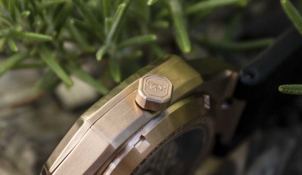 The crown itself is easy to grip, with a deeply engraved logo. It’s sturdy and functional enough, making time-setting pleasant.